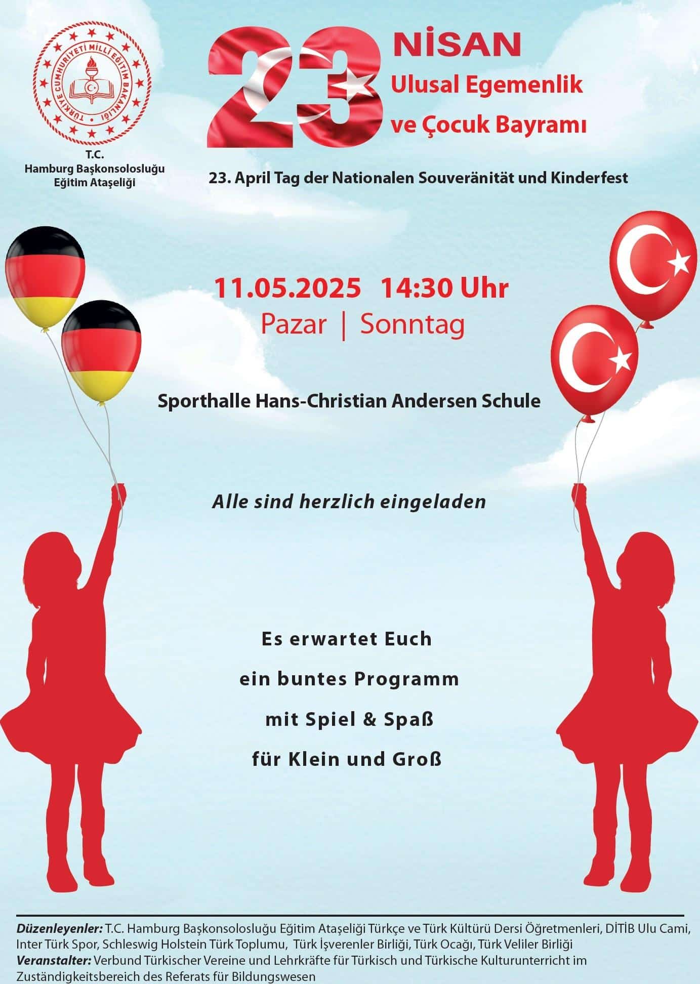 23 Nisan Ulusal Egemenlik ve Çocuk Bayramı'nın 105. Yılı kutlamalarına davetlisiniz!Tarih: 11.05.2025 Pazar 14:30