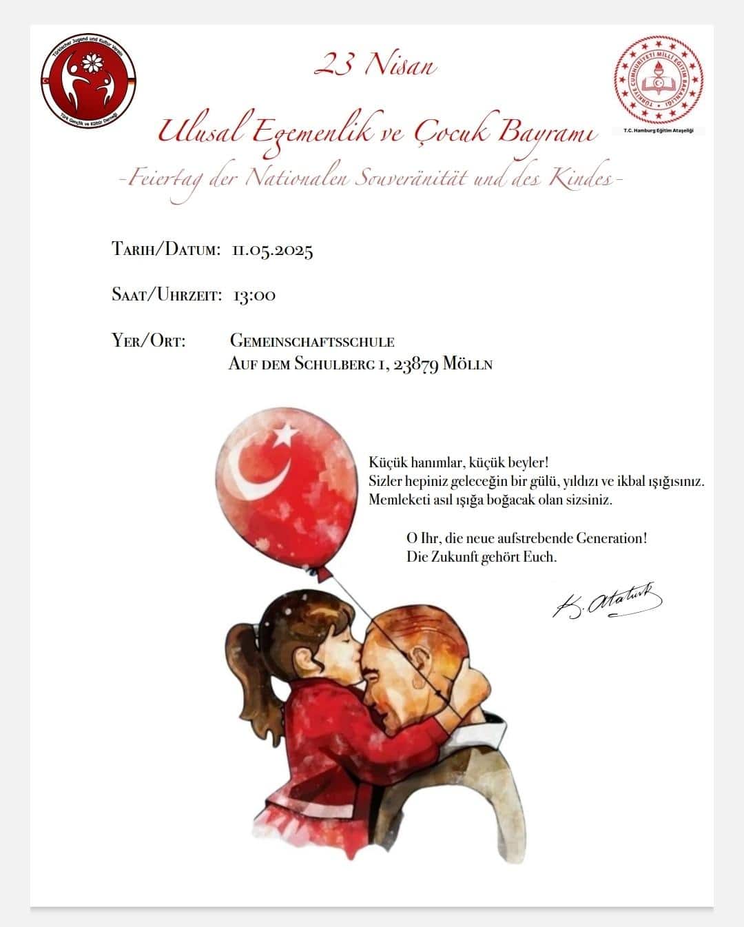 23 Nisan Ulusal Egemenlik ve Çocuk Bayramı'nın 105. Yılı kutlamalarına davetlisiniz!Tarih: 11.05.2025 Pazar 11:00